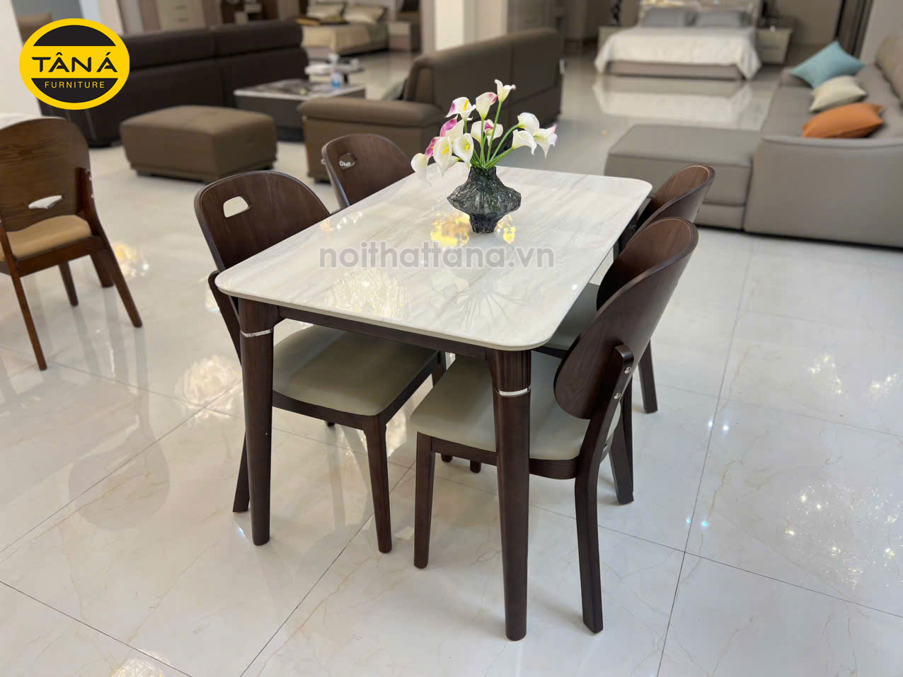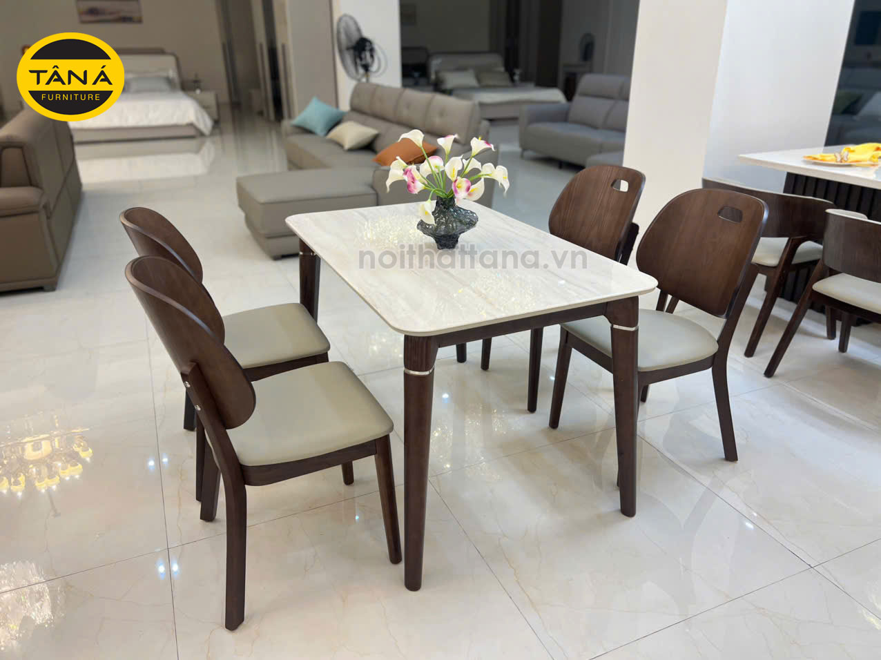- Bộ bàn ăn: 4 ghế + Bàn mặt đá men