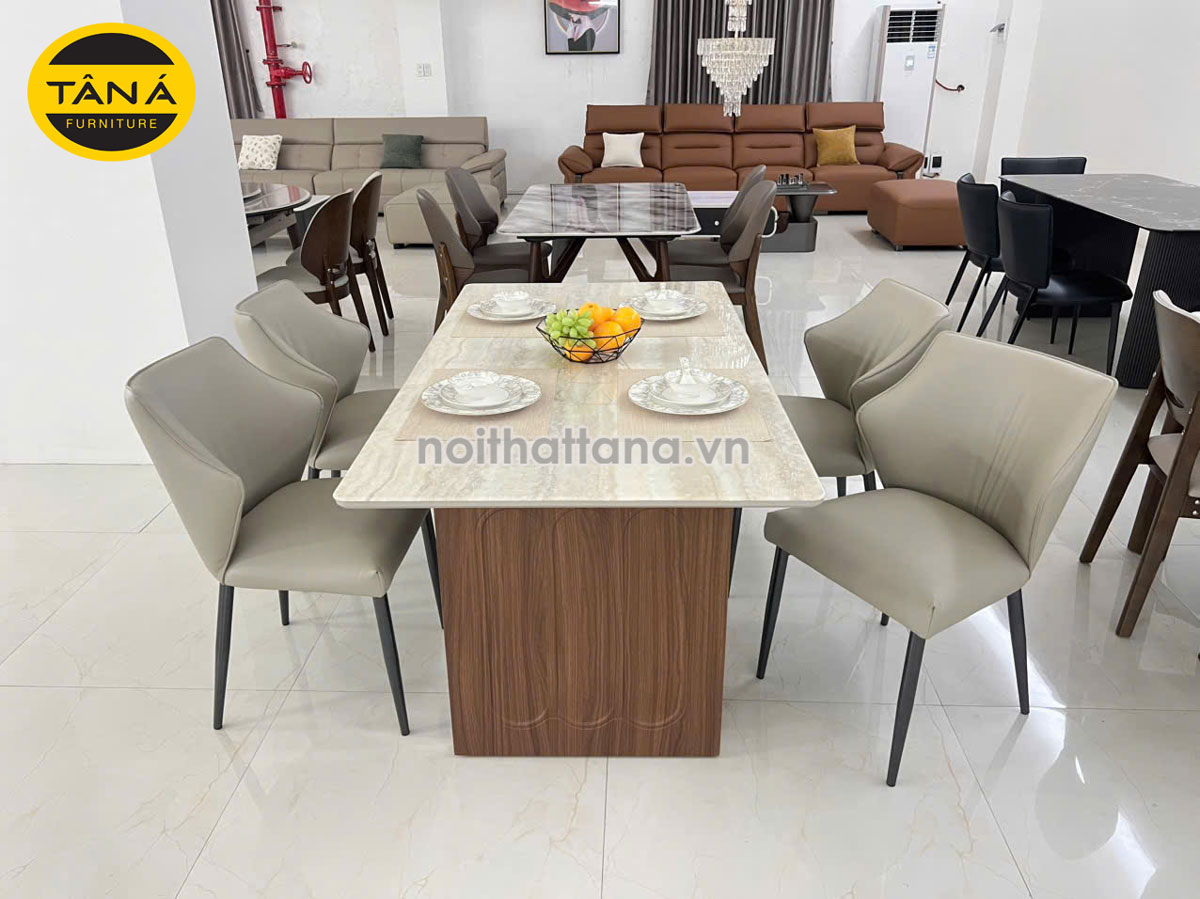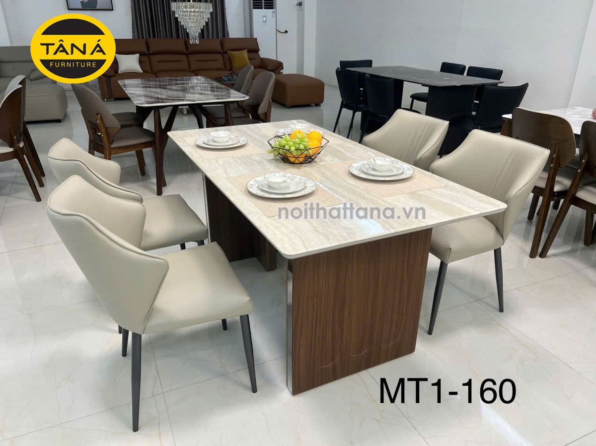 Bàn Ăn Mặt Đá Nhân Tạo 6 Ghế Bọc Da Cao Cấp BA-MT1-160