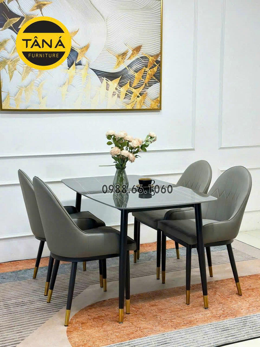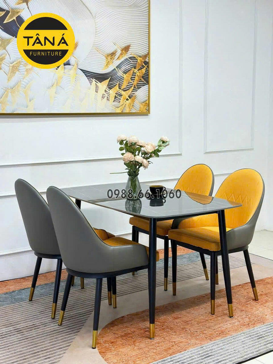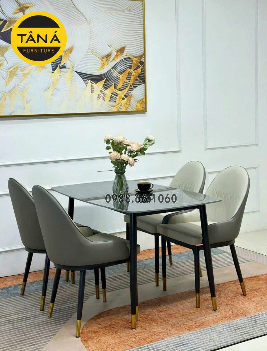 - Bộ bàn ăn: 4 Ghế + Bàn mặt đá Ceramic