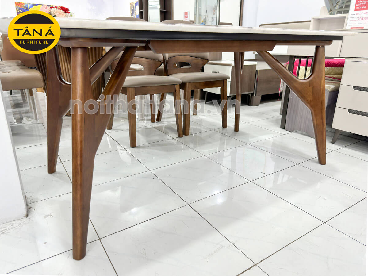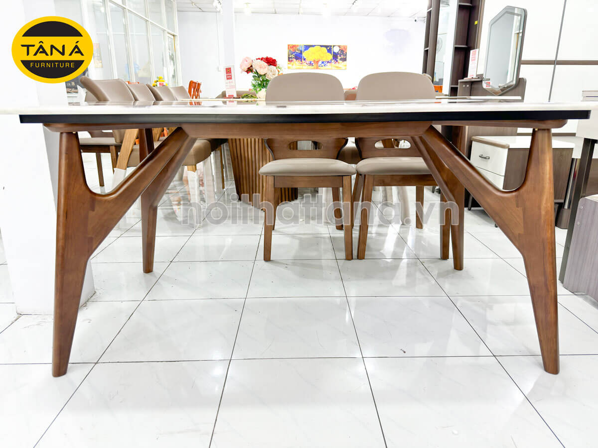 Đặc biệt hơn, chân bàn được cách điệu đơn giản với phần chữ V tách mở ở phần gần gầm bàn tăng khả năng nâng đỡ để bàn ăn trở nên vững chắc cũng như đẹp mắt hơn.