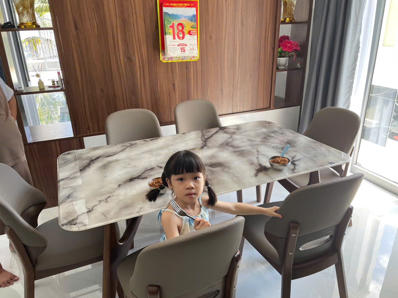 Bàn ăn quá hợp với nhà mình luôn