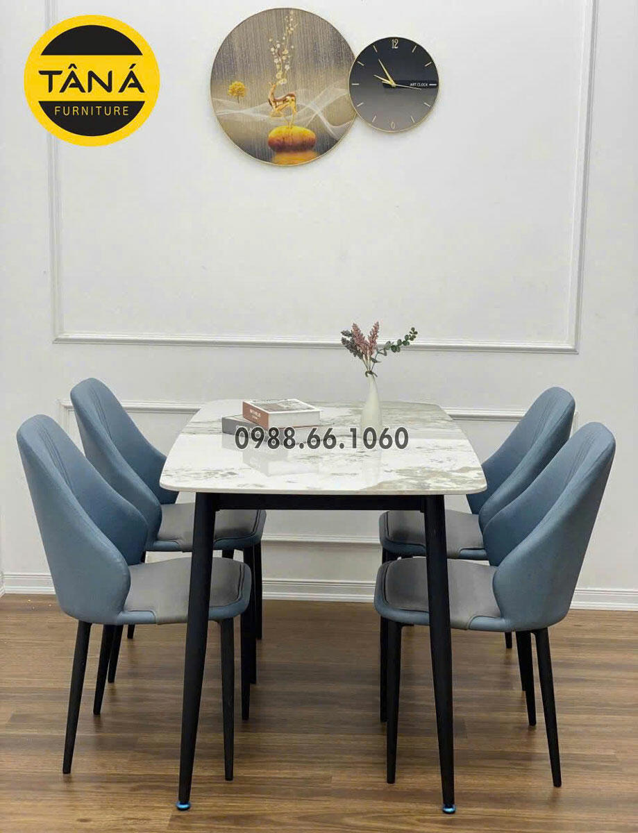 - Bộ bàn ăn: 4 ghế + Bàn mặt đá Ceramic