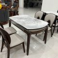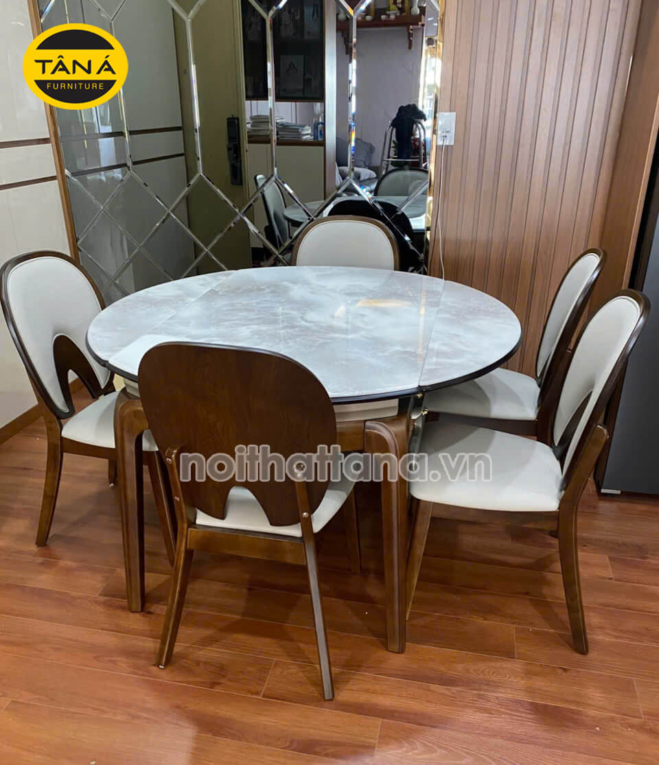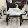 Bộ bàn ăn với kết vững chắc mặt đá tròn có thể gấp gọn thành bàn dài nhanh chóng chóng và dễ dàng. Bên cạnh đó, bộ khung được làm từ chất liệu gỗ Hương Thái màu sắc thanh lịch, tao nhã từ vân gỗ tự nhiên và độ bền vượt trội. Bàn ăn mặt đá gấp gọn gồm 6 ghế ngồi, được trang bị đầy đủ đệm da êm ái mang đến trải nghiệm tốt nhất cho người sử dụng.