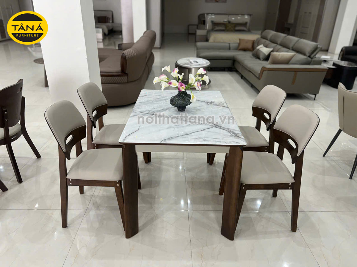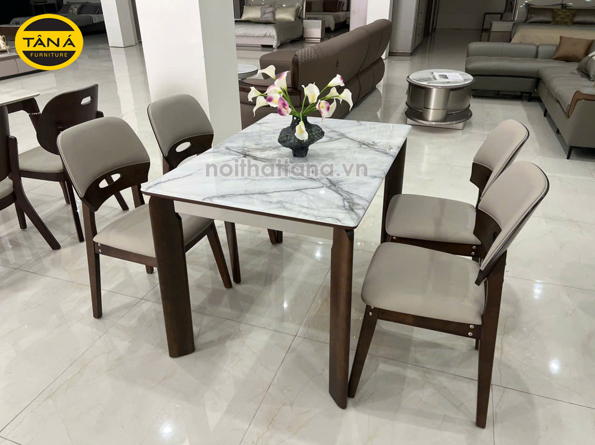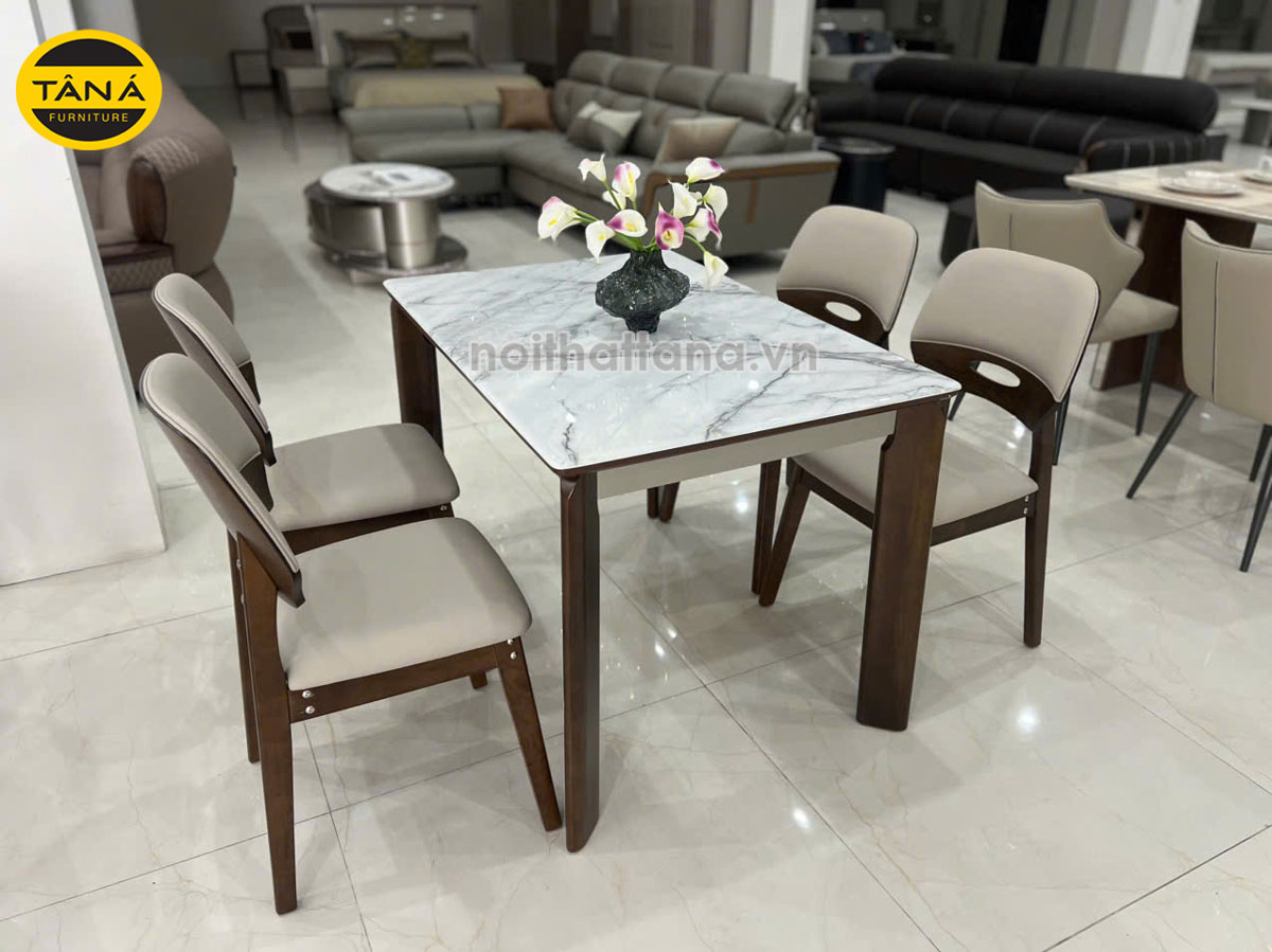 Đặt mua Bộ Bàn Ăn Gỗ Sồi Mặt Đá Nhân Tạo 4 Ghế Nhập Khẩu BA-F55-01