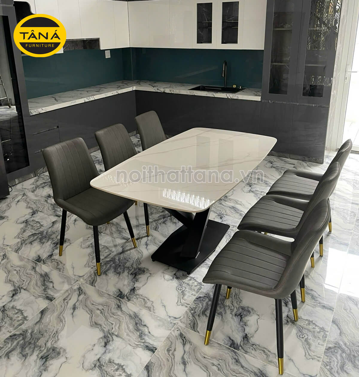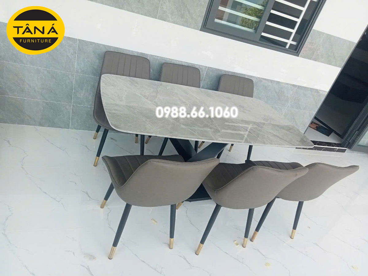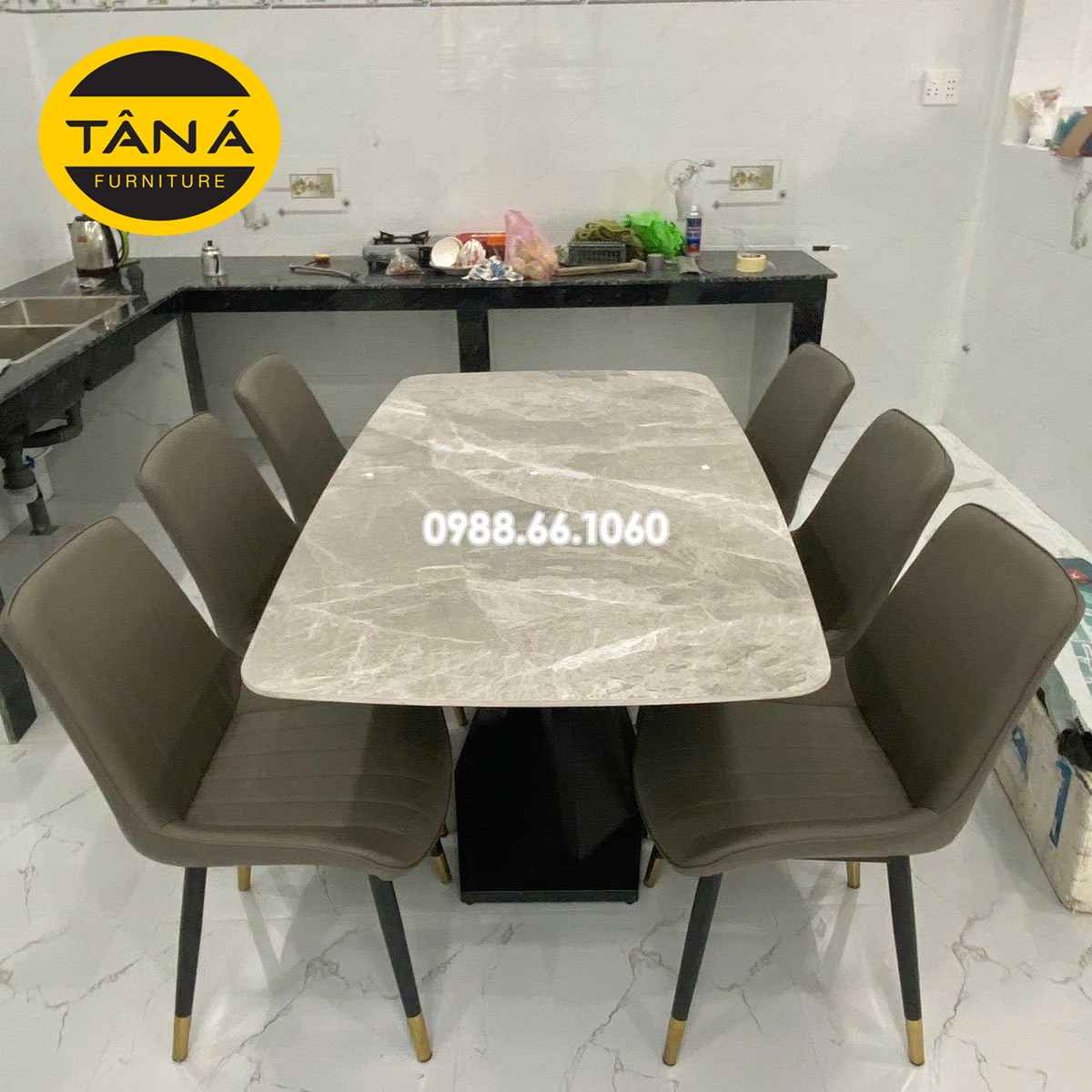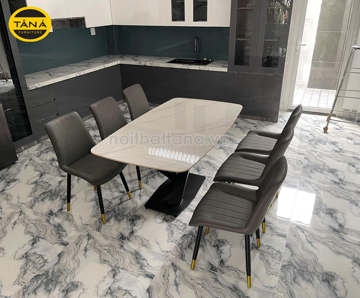 - Bộ bàn ăn: 6 Ghế + Bàn mặt đá men