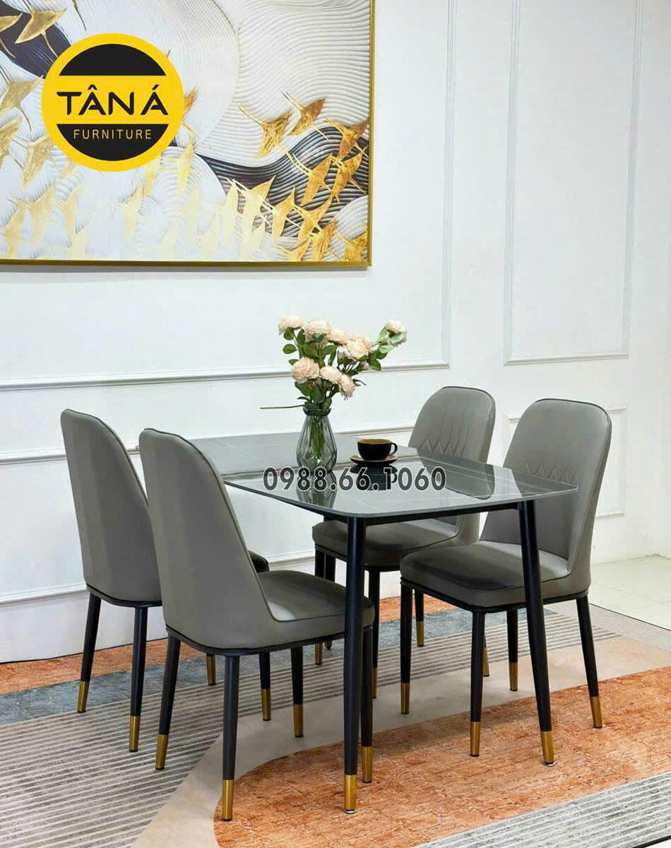 - Bộ bàn ăn: 4 ghế + Bàn mặt đá Ceramic