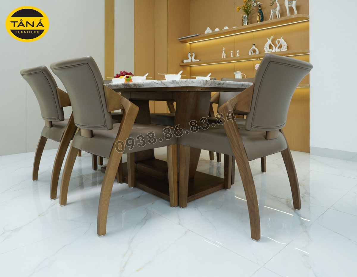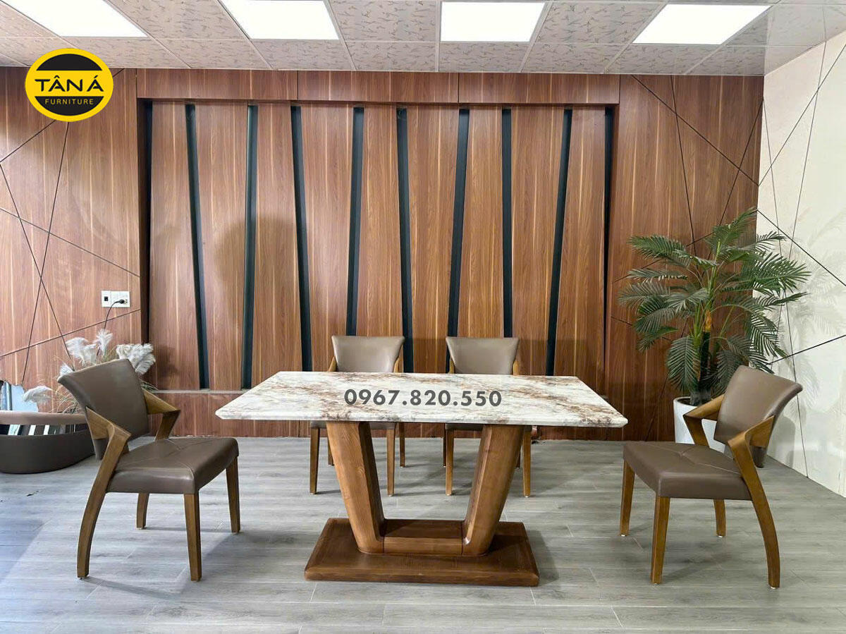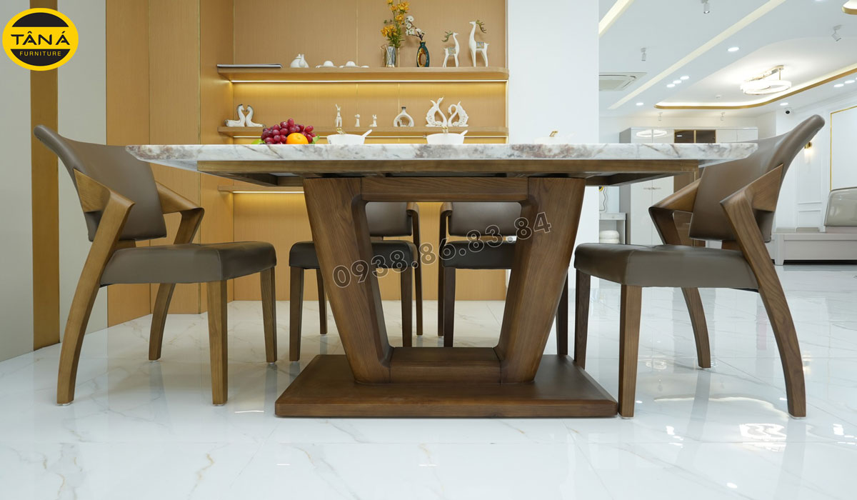 Trải nghiệm bộ bàn ăn mặt đá nhân tạo hiện đại gỗ sồi nhập Khẩu BA248