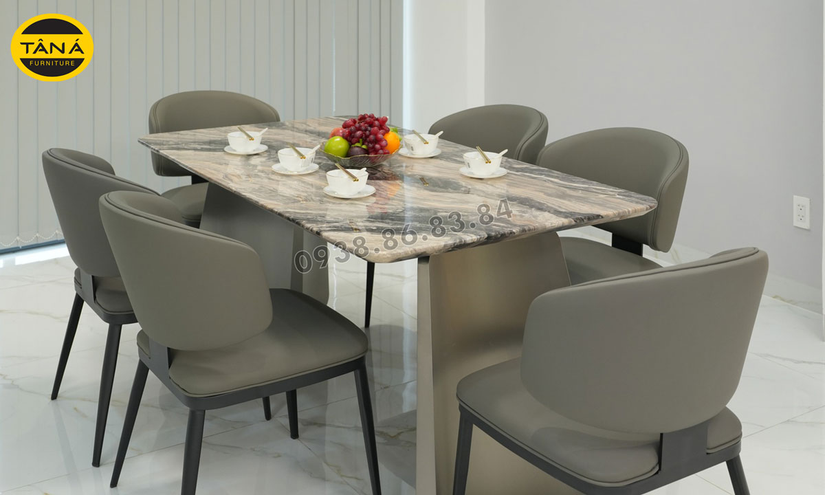 Không chỉ nịnh mắt người tiêu dùng, bộ bàn ăn được làm từ mặt đá tự nhiên còn có độ bền vượt trội, chịu lực tốt và dễ dàng vệ sinh. Hơn nữa với thiết kế bo cạnh bàn tinh tế, mẫu bàn này không chỉ đảm bảo an toàn mà còn tạo cảm giác mềm mại, thư thái cho người sử dụng.