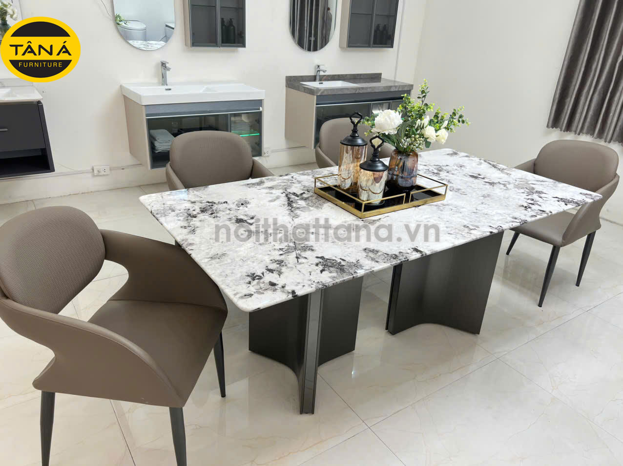 Đặt mua Bộ Bàn Ăn Mặt Đá Tự Nhiên 1m8 +6 Ghế Nhập Khẩu BA-AC-31