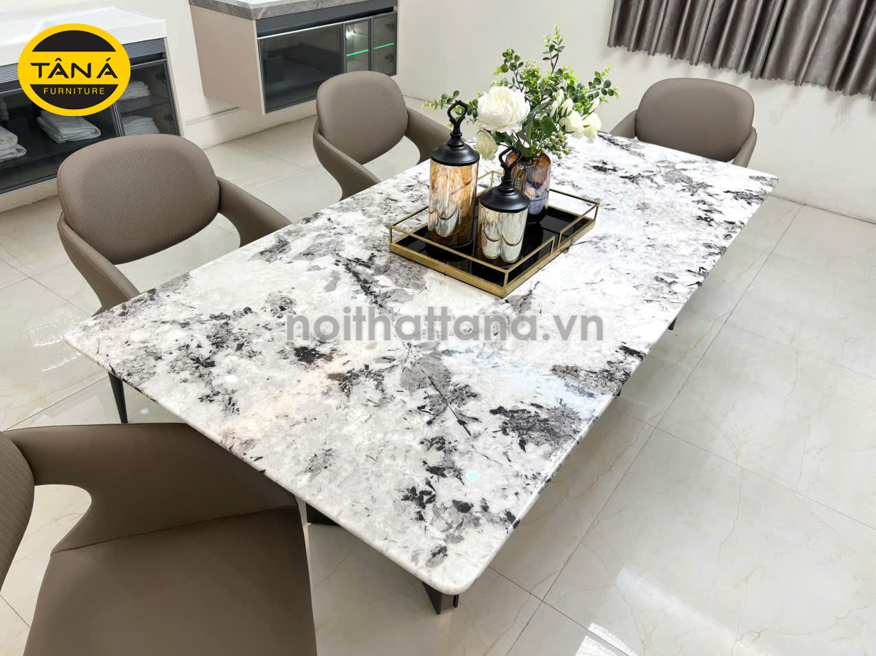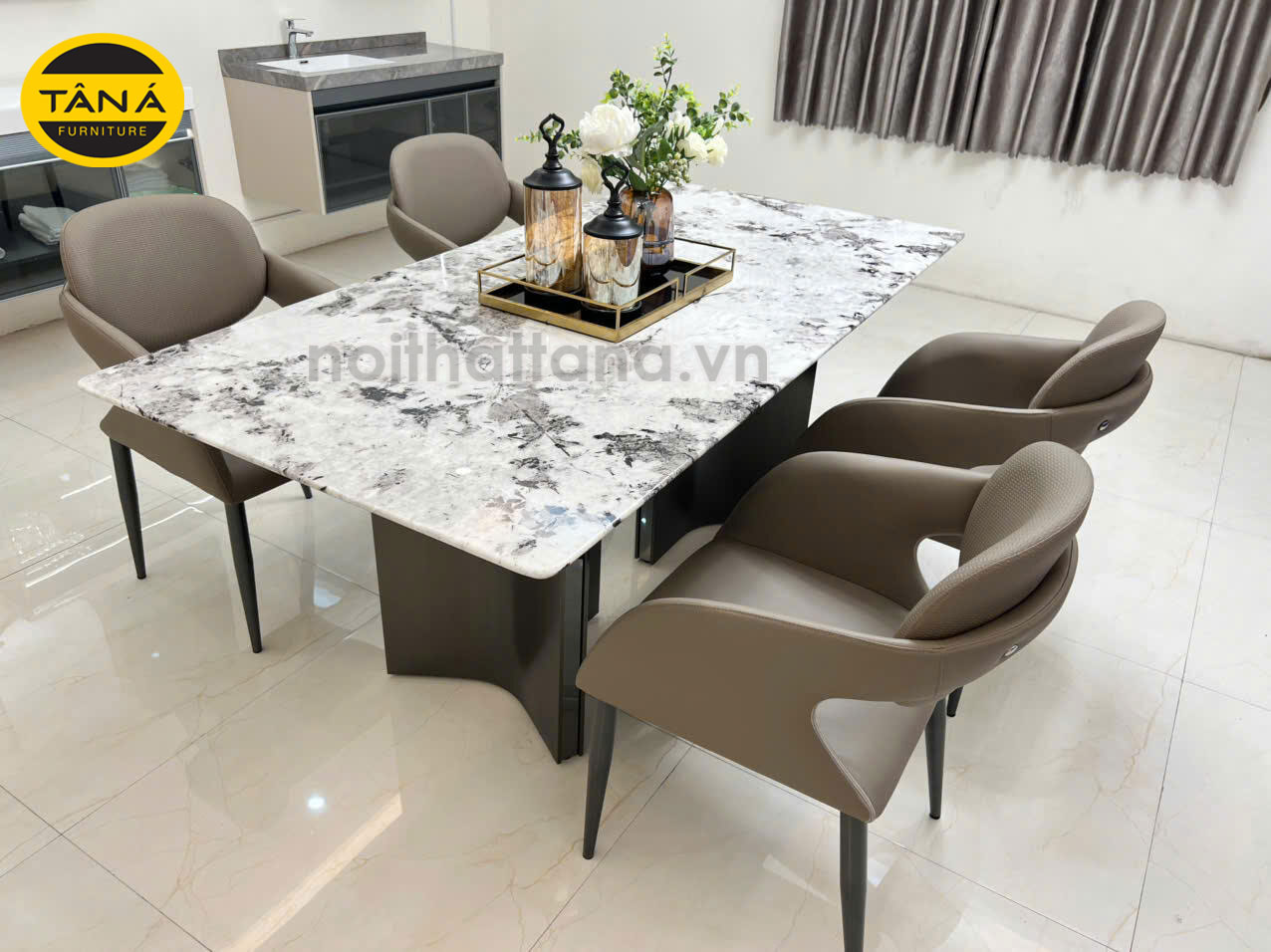 Bộ Bàn Ăn Mặt Đá Tự Nhiên 1m8 +6 Ghế Nhập Khẩu BA-AC-31