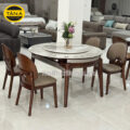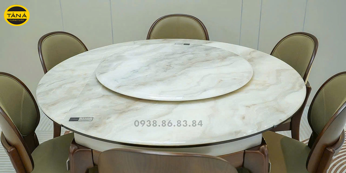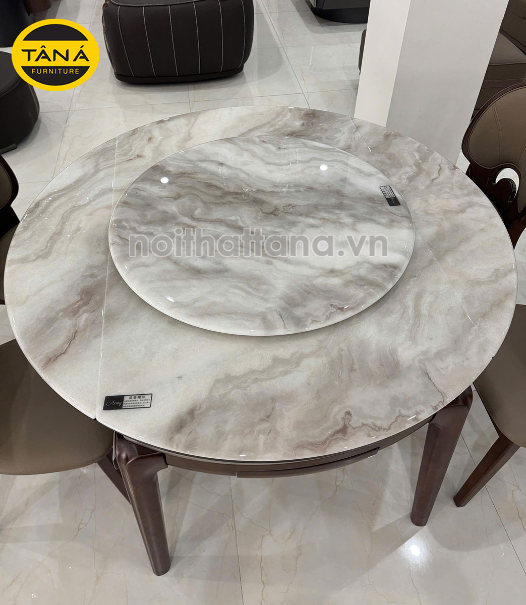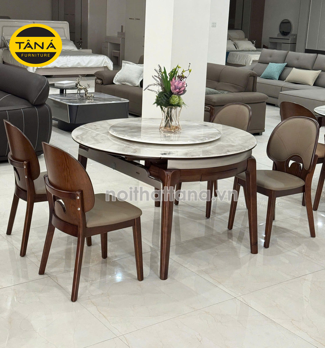 - Trạng thái mở rộng: Khi mở toàn bộ, bàn có dạng hình tròn với đường kính 1,3m. Kích thước này đủ tiêu chuẩn để setup 6 ghế ngồi rộng rãi. Hình tròn trong phong thủy tượng trưng cho sự viên mãn, quây quần, rất thích hợp cho những bữa cơm gia đình hoặc tiệc tùng.