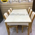 Bộ bàn ăn mặt đá 6 ghế BA02 là mẫu bàn ăn có màu trắng kết hợp với màu của gỗ tự nhiên. Đây là 2 gam màu dễ phối hợp nhất trong các phối màu nội thất hiện nay.