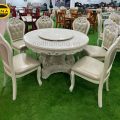 Ảnh Thực Tế Bộ Bàn Ăn Tròn Mặt Đá Xoay Tân Cổ Điển 8 Ghế Gỗ Sồi BA50 Cao Cấp