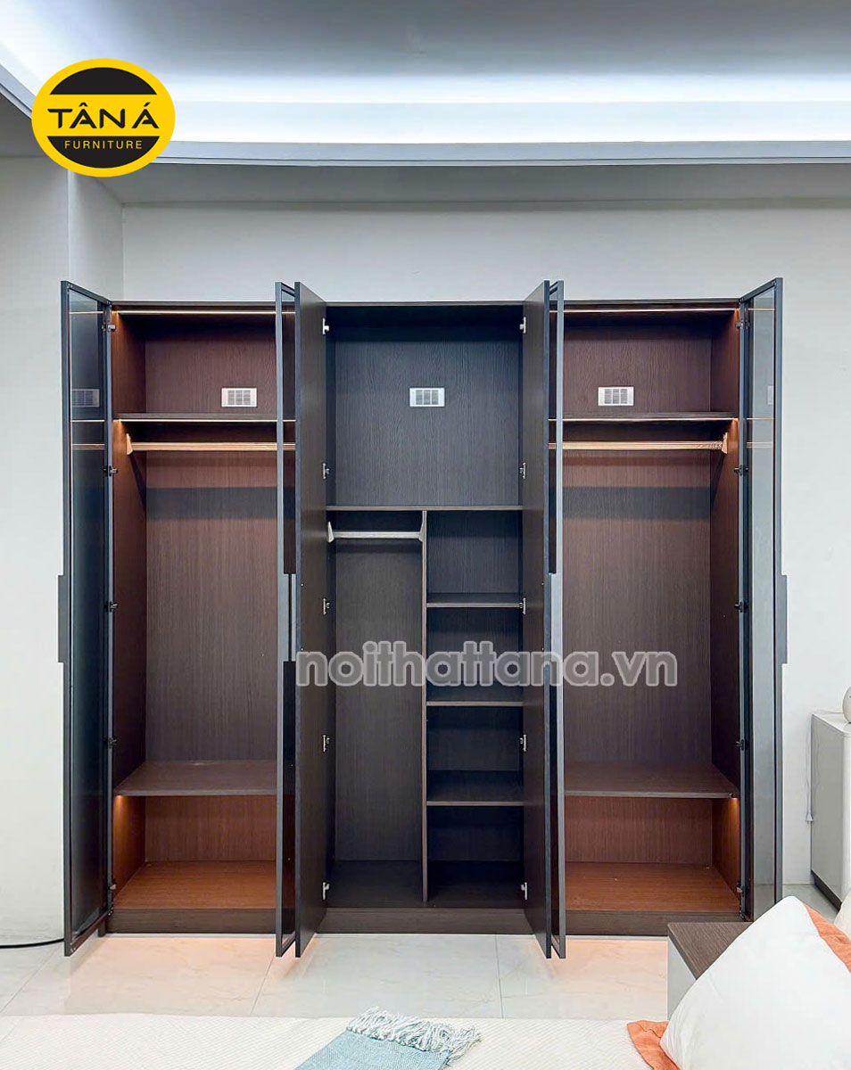 - Sử dụng tủ áo: Với kích thước tủ lớn 2m45, hãy phân bổ quần áo đều các buồng, tránh treo quá tải trọng ở một bên cánh để bảo vệ bản lề cửa luôn êm ái.