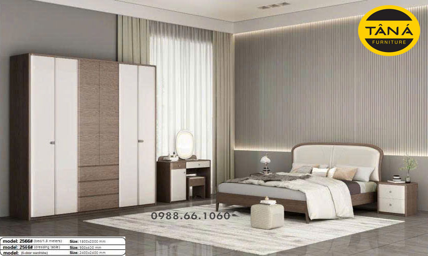 - Kích thước: Giường 1,8m X 2m, Tủ 2,4m x 2,4m