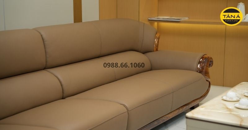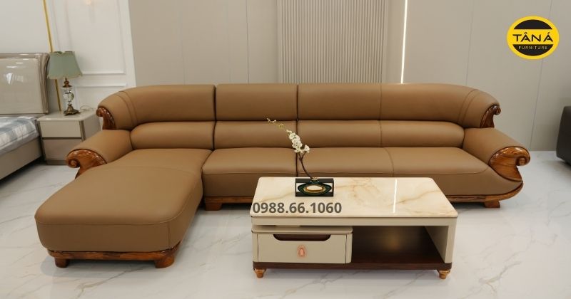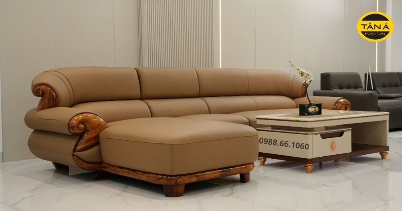 Ghế sofa gỗ mun góc L bọc da bò AT-H46 hiện đại nhập khẩu