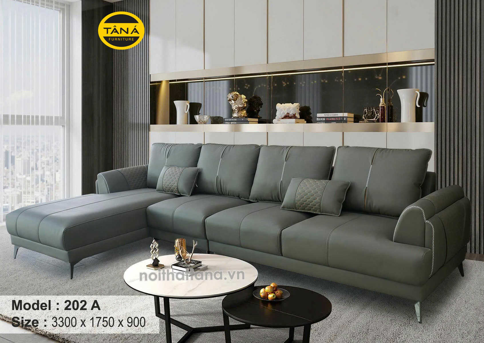 Ghế Sofa Gỗ Sồi Góc L Bọc Da Chống Trầy, Lau Được Mực AB-202A