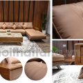 Bộ ghế có kích thước 3.5m x 1.8m, kết hợp với ghế đôn, bàn trà, tạo nên một không gian hoàn mỹ để bạn tiếp khách đến thăm nhà, đó cũng là nơi để cả gia đình cùng quây quần trò chuyện vui vẻ bên nhau.