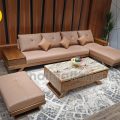 Hình thực tế ghế sofa gỗ sồi nga bọc da góc L đẹp AB-881A-22