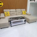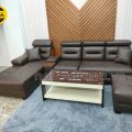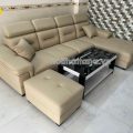 Ảnh chụp nhà khách mẫu ghế sofa da góc chữ L cao cấp Q03