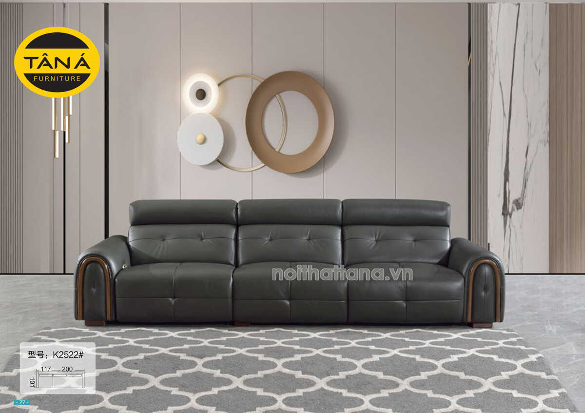 Sofa Băng Da Bò Nhập Khẩu TP-K2522 Tựa Tay Bo Tròn Sang Trọng