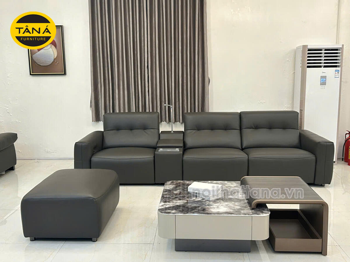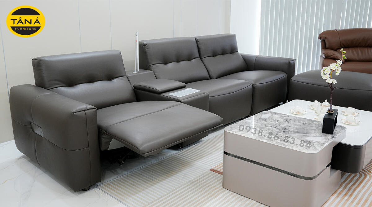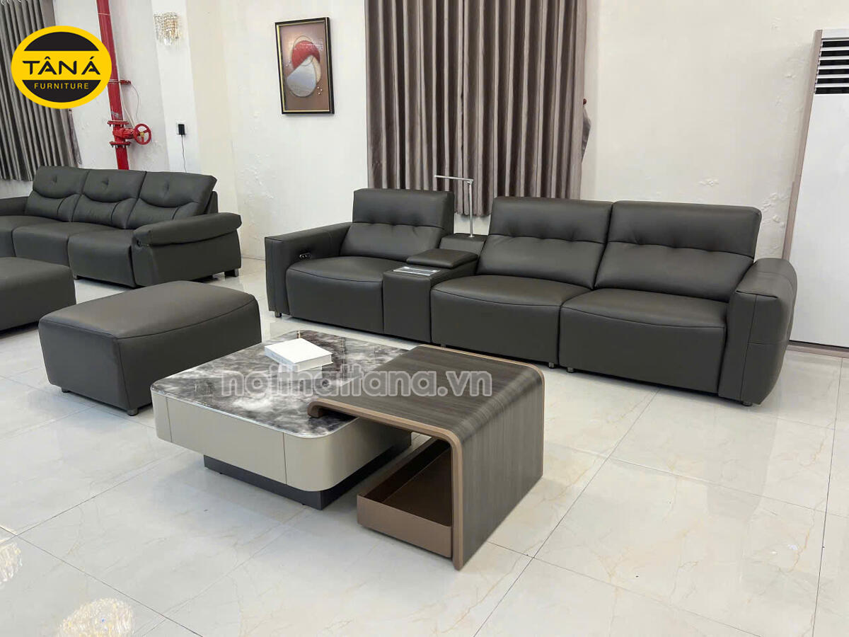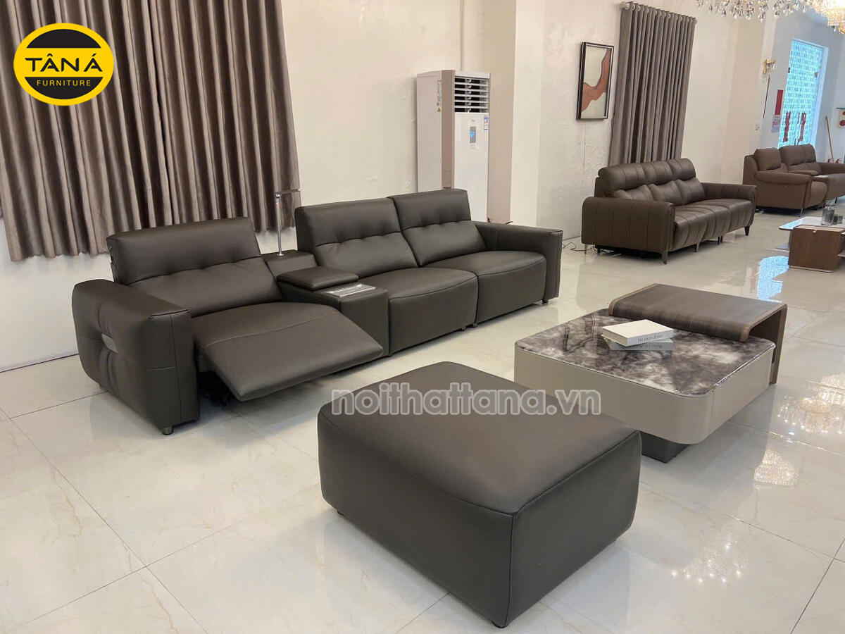Hình Thực Tế Sofa Băng Da Sinh Thái Nhập Khẩu AT-5028 Có Ghế Chỉnh Điện Hiện Đại
