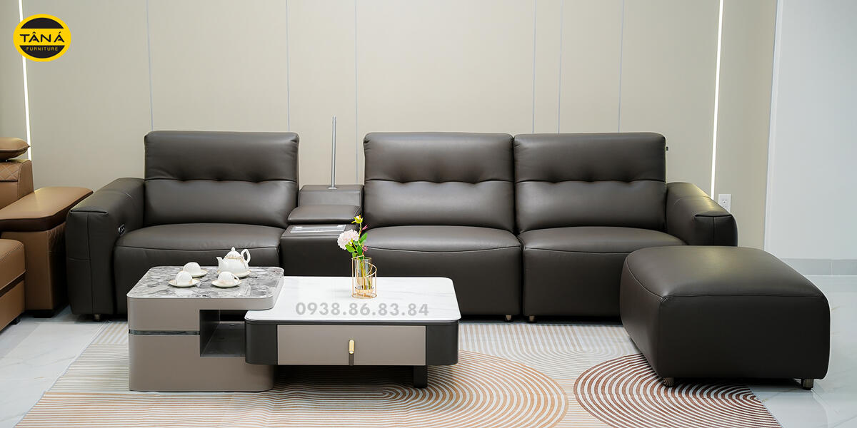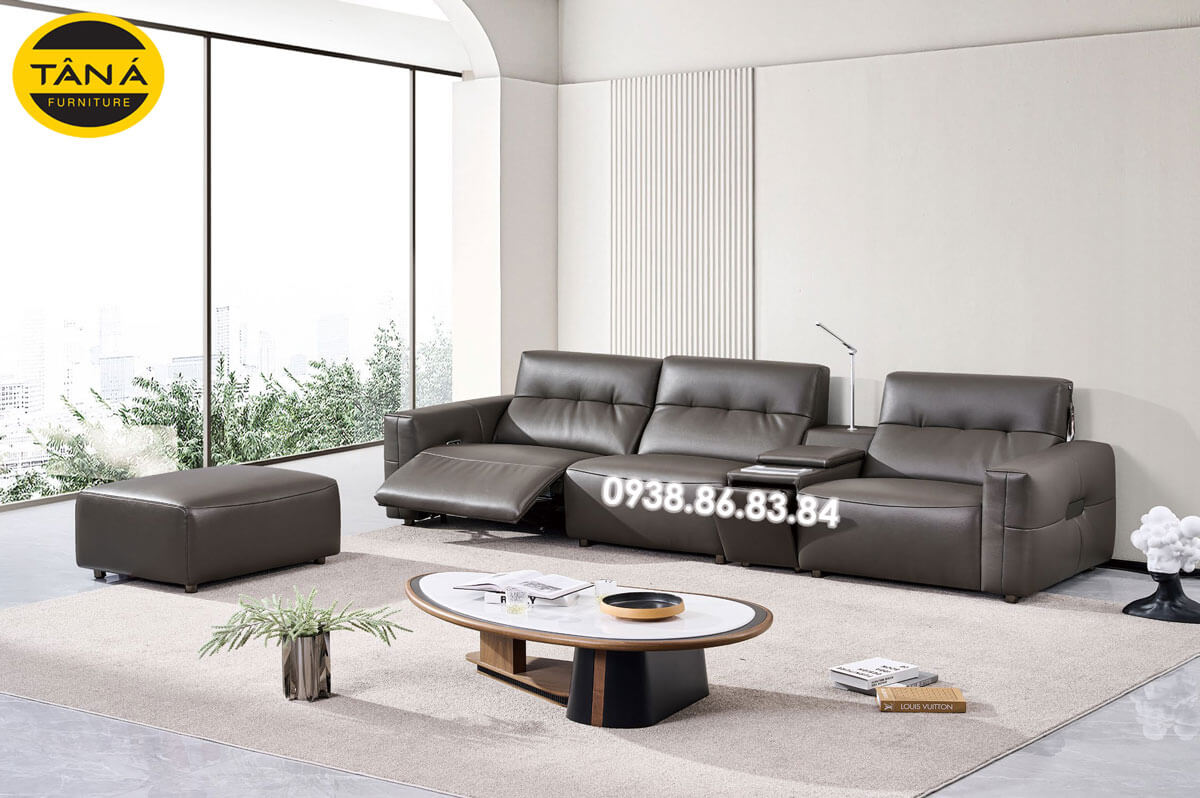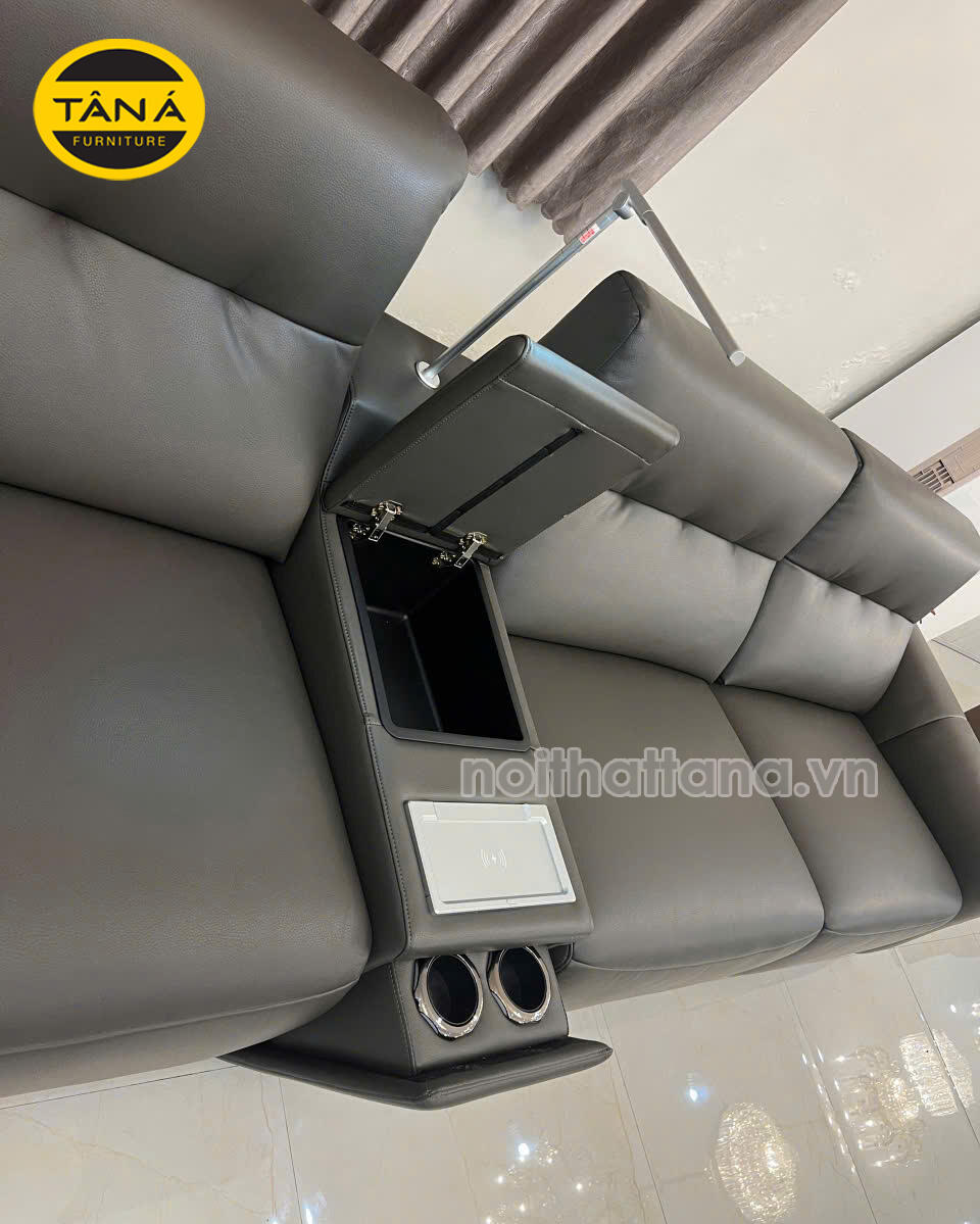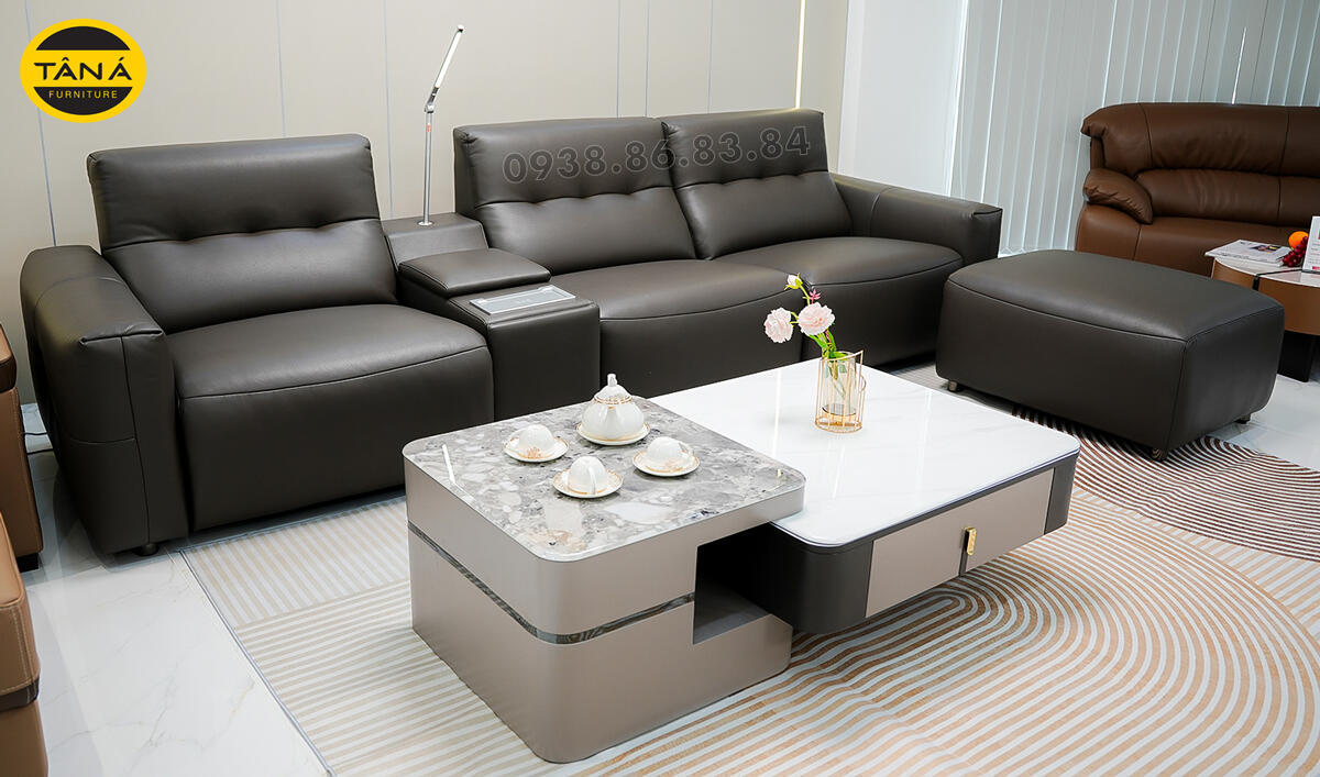 Hình Thực Tế Sofa Băng Da Sinh Thái Nhập Khẩu AT-5028 Có Ghế Chỉnh Điện Hiện Đại