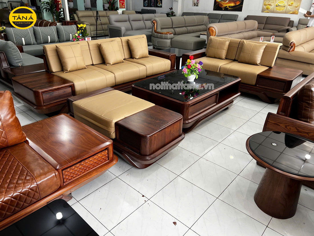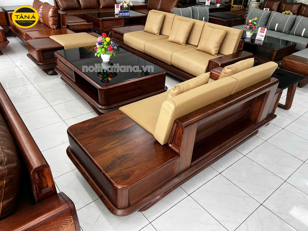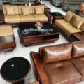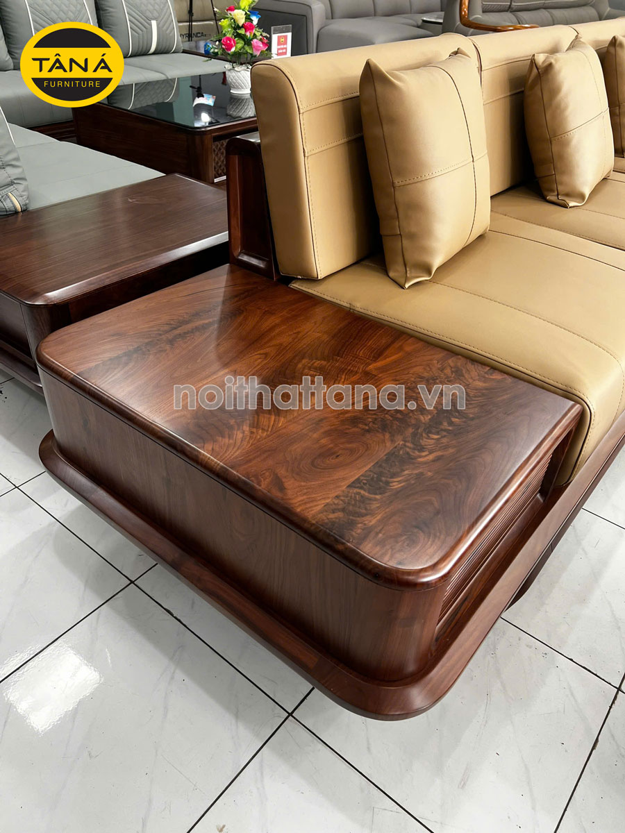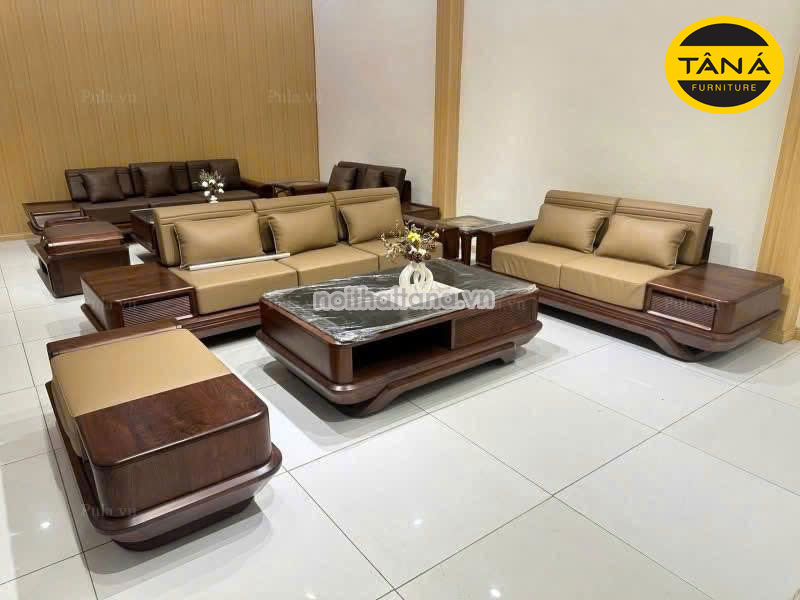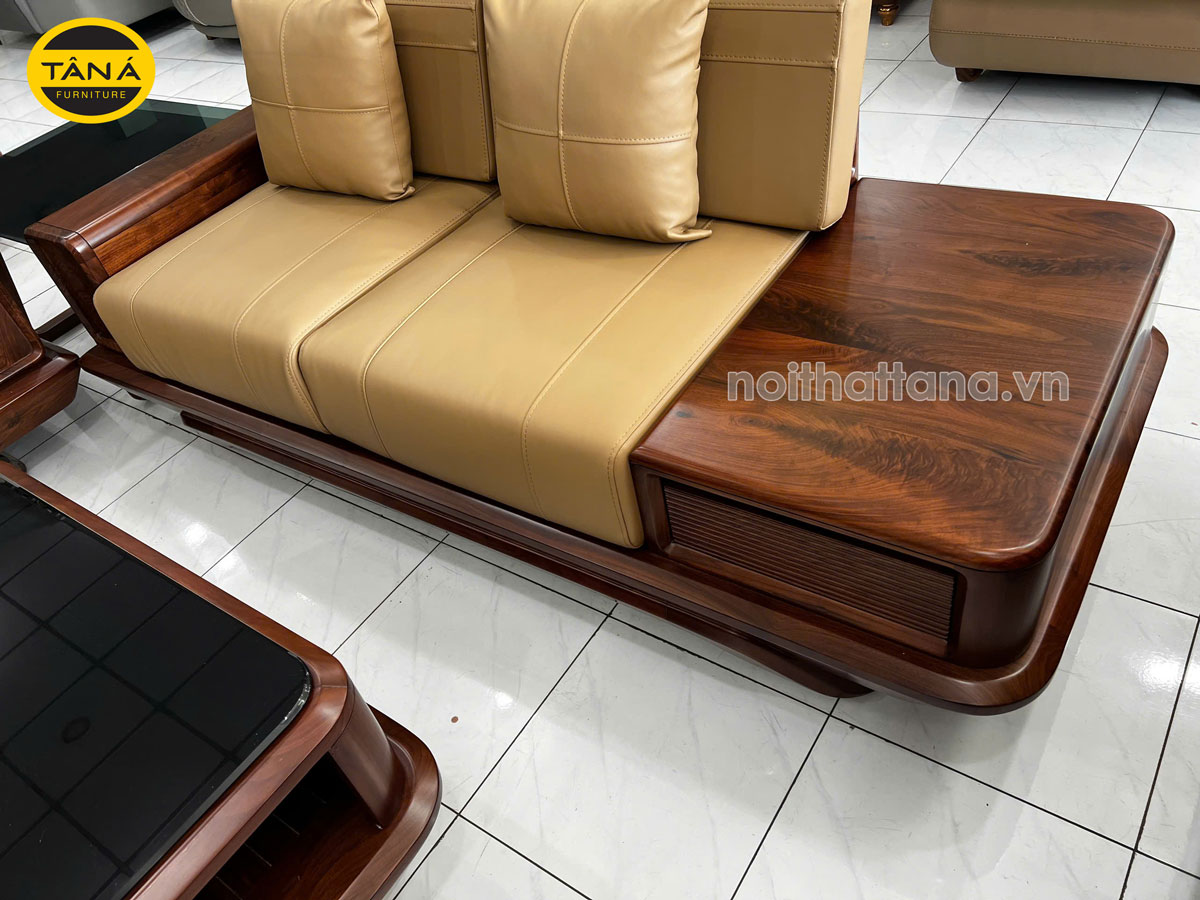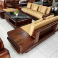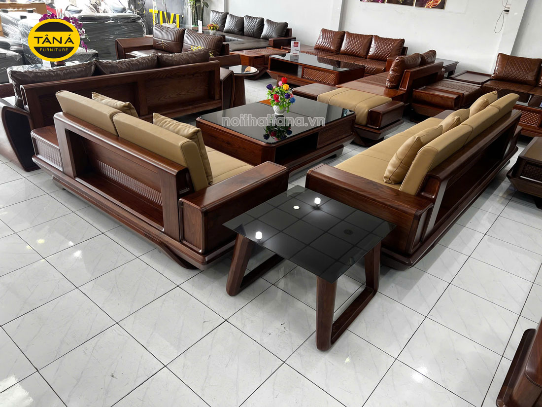 Sofa Băng Gỗ Óc Chó Bọc Da Microfiber Hiện Đại GO11