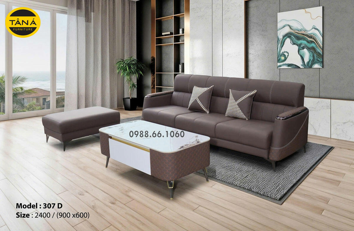 Sofa Da Băng Chống Trầy AB-307D Hiện Đại Cho Phòng Khách