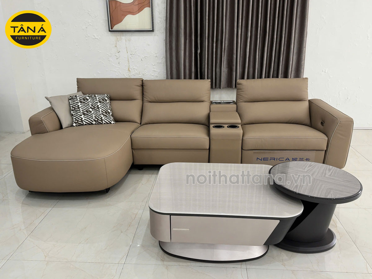 Sofa Da Bò Góc L Có Ghế Chỉnh Điện Hiện Đại AT-T812-B Nhập Khẩu
