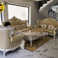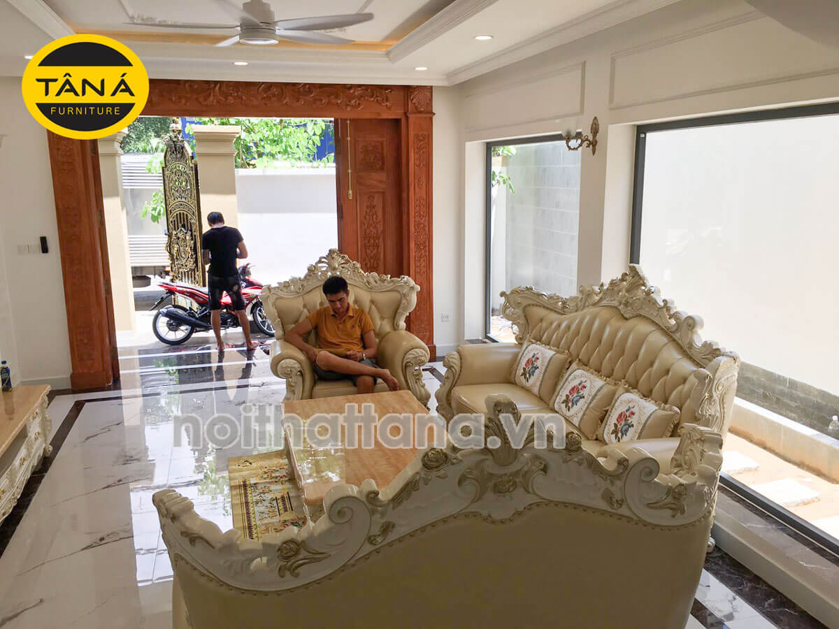 - Ghế sofa da bò tân cổ điển nhập khẩu Đài loan TA-M35C sở hữu phong cách châu âu, khung ghế được chạm khắc rất công phu, tông màu kem kết hợp với màu trắng sữa dọc theo khung và ghế rất sang trọng.