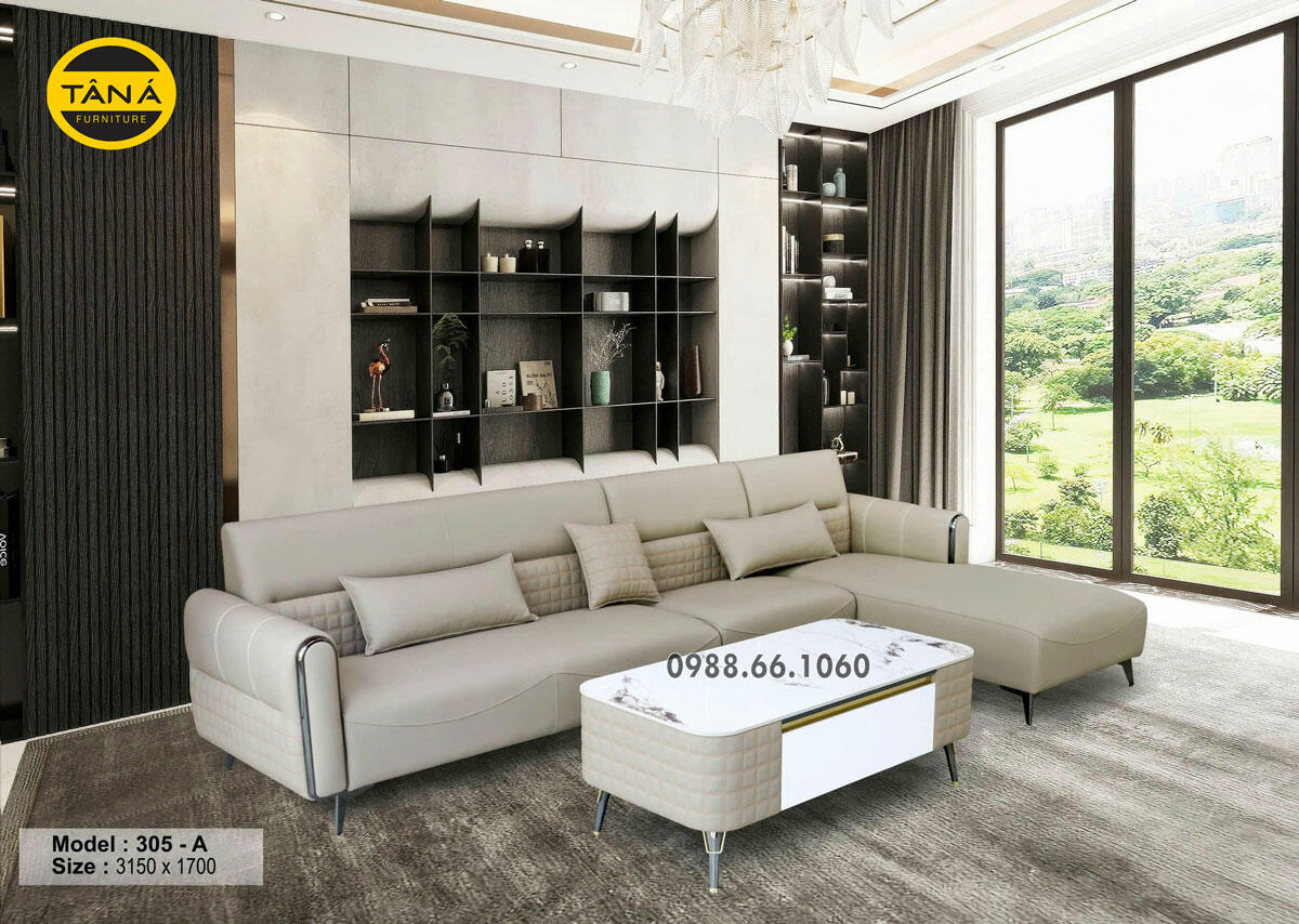 Đặt mua Sofa Da Chống Trầy Góc Chữ L Cho Phòng Khách Hiện Đại AB-305-A