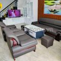 Lớp bọc ngoài của sofa được làm từ da Hàn Quốc cao cấp mang đến sự mềm mại, bền đẹp và khả năng chống thấm nước tốt, rất phù hợp cho các không gian văn phòng yêu cầu sự tiện nghi và dễ dàng vệ sinh. Chất liệu da không chỉ tạo cảm giác mát mẻ vào mùa hè mà còn giữ ấm vào mùa đông, giúp nâng cao sự thoải mái khi sử dụng.
