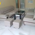 Kiểu dáng bộ ghế sofa văn phòng cao cấp dạng băng dài. Kèm theo 2 ghế đơn và các đôn nhỏ đi kèm. Bộ ghế thích hợp kết hợp với bàn trà sofa mặt kính để mang đến sự hiện đại, tinh tế.