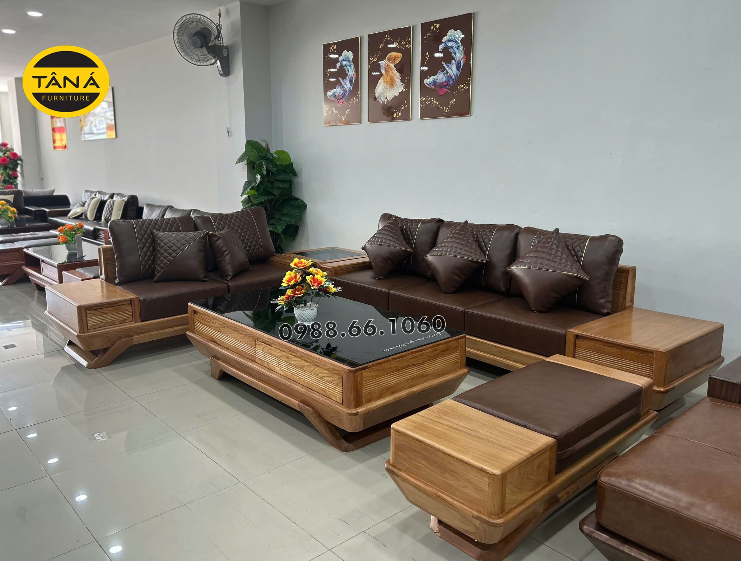 SOFA GỖ GÕ ĐỎ DA Ý GG02 THỜI THƯỢNG SANG TRỌNG