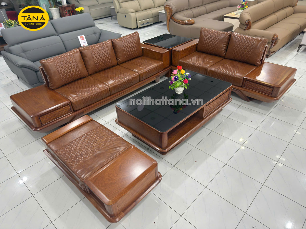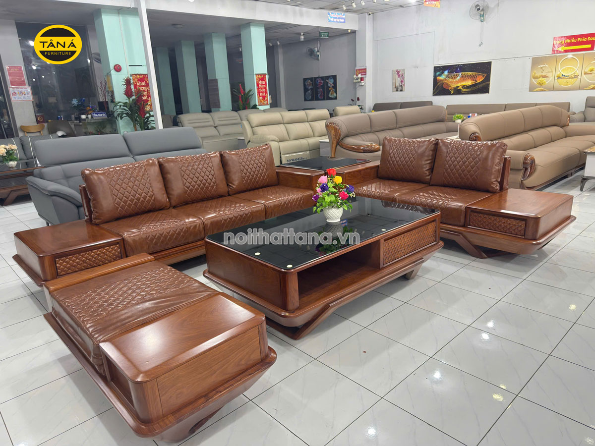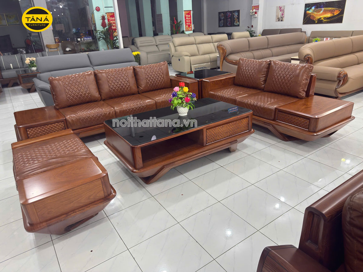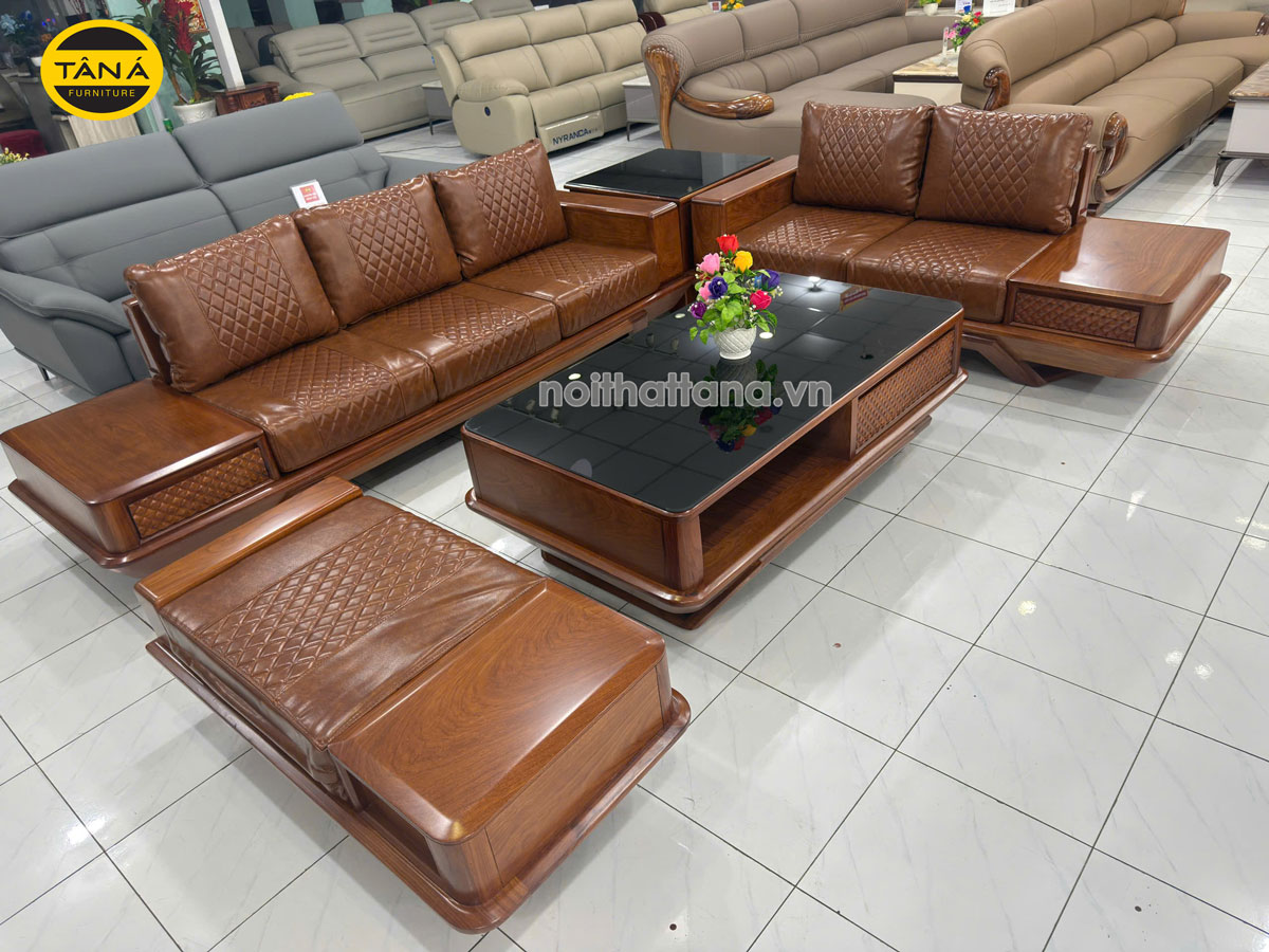 Sofa Gỗ Hương Da Hàn Quốc Nhập Khẩu GH86