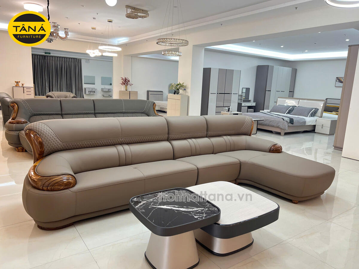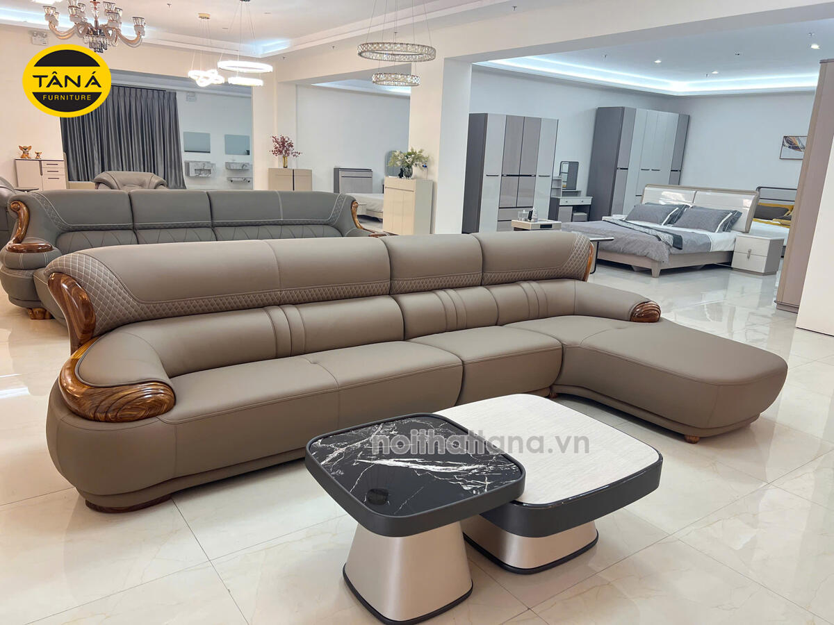 Đặt mua Sofa Gỗ Mun Góc L Bọc Da Siêu Sợi Nhập Khẩu AT-G518 Kiểu Dáng Bo Tròn Hiện Đại