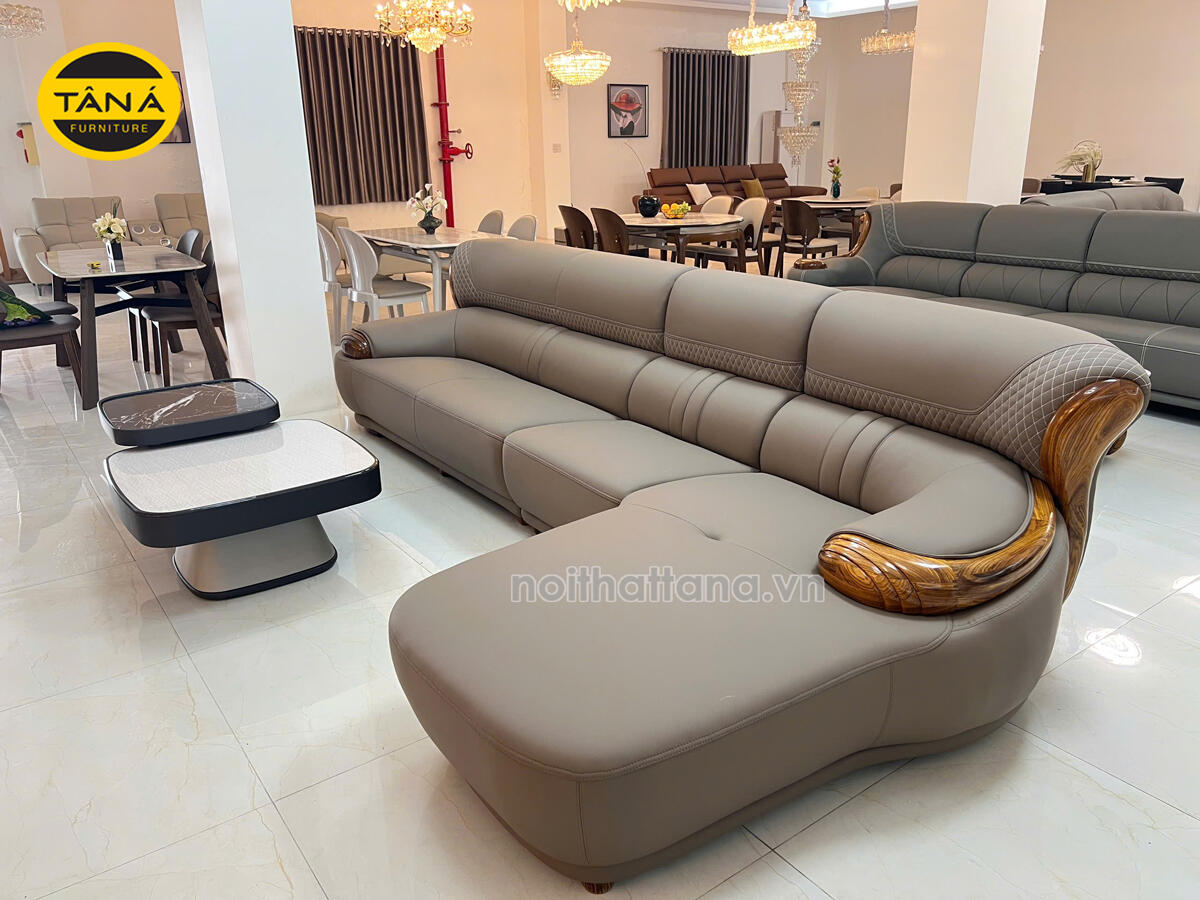 Sofa Gỗ Mun Góc L Bọc Da Siêu Sợi Nhập Khẩu AT-G518 Kiểu Dáng Bo Tròn Hiện Đại