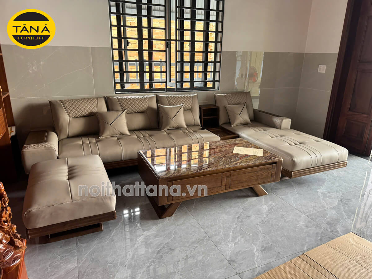 Hình chụp thực tế sofa gỗ sồi góc L đẹp AB-882A-12 da chống trầy