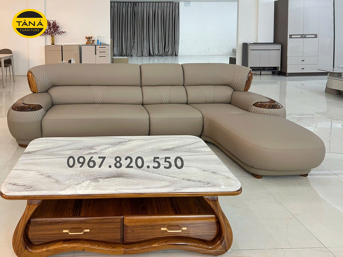 Đặt mua Sofa Góc Da Siêu Sợi Gỗ Mun Cao Cấp AT-516B Hiện Đại Nhập khẩu