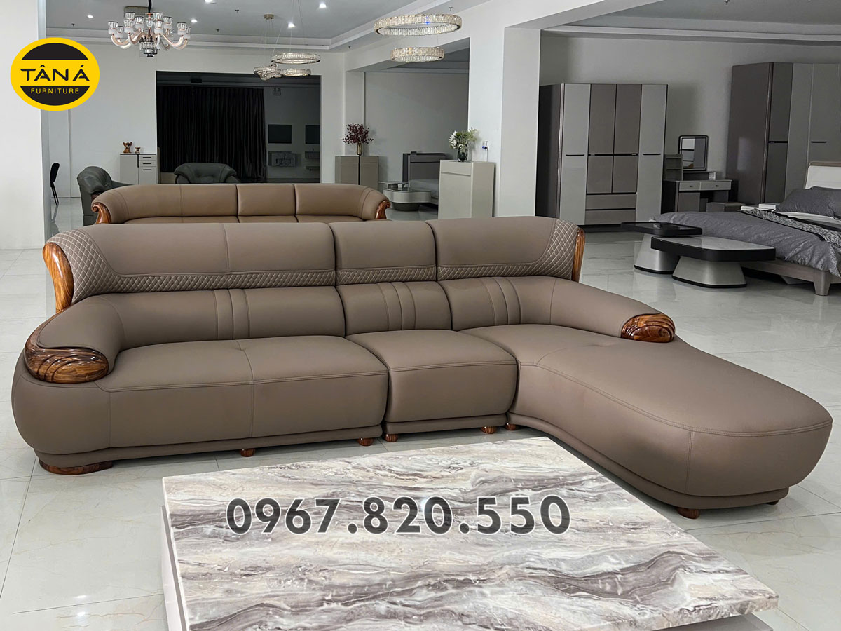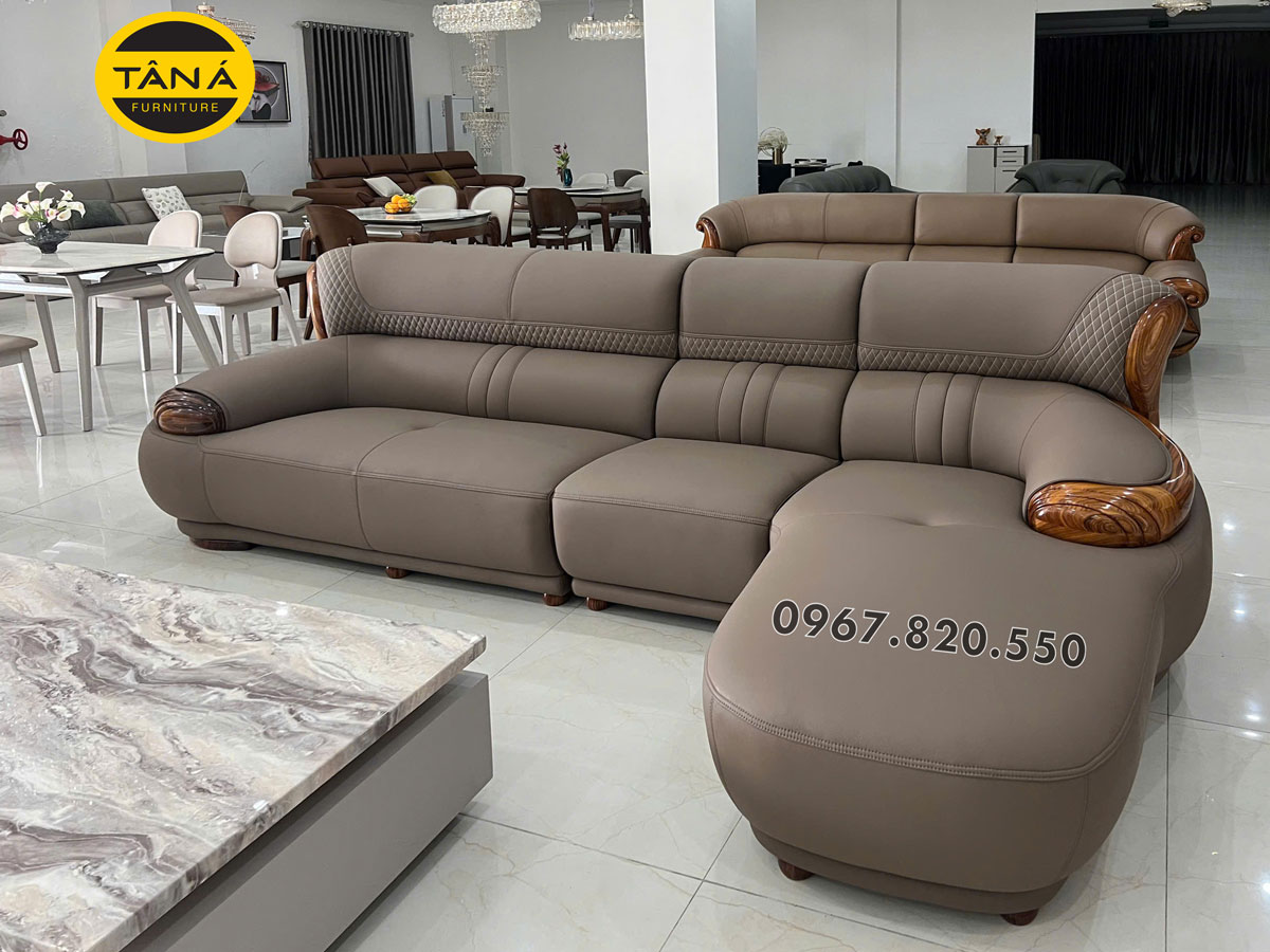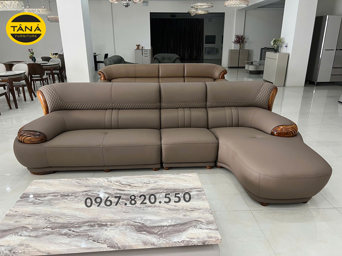 Sofa Phòng Khách Cao Cấp Da Siêu Sợi Gỗ Mun AT-G518B Nhập Khẩu