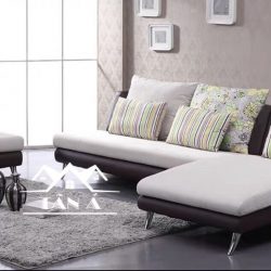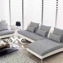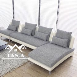 Sofa Vải Bố QV01 góc L chân cao inox cho không gian rộng rãi